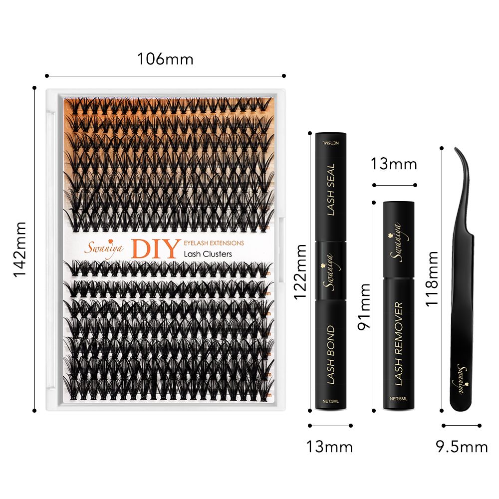 Alcance as extensões de cílios de aparência profissional com nossos kits de aglomerados de cílios DIY! O kit inclui cílios de cacho 50d+60d D em um perfeito 10-16 mix, dando a você uma aparência natural e volumosa. Fácil de usar e adequado para todos os níveis de habilidade, este kit é essencial para qualquer entusiasta dos cílios.