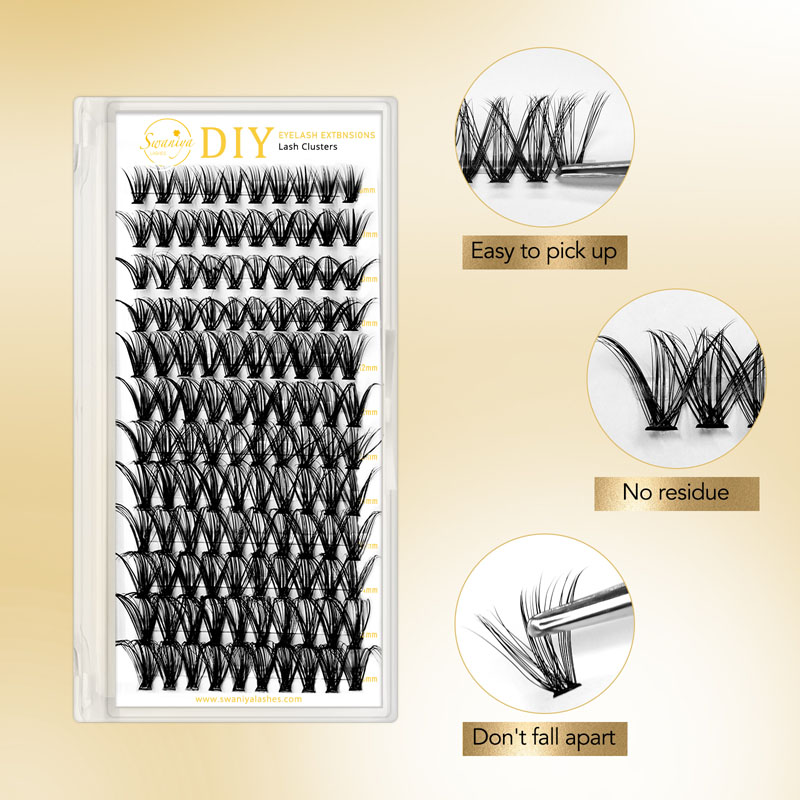 Os clusters de cílios Swaniya oferecem durabilidade e longevidade superiores em comparação com os cílios tradicionais de tira, garantindo que você obtenha o maior retorno do seu dinheiro. Além disso, eles vêm em uma bandeja reutilizável que pode ser facilmente armazenada e carregada com você onde quer que você vá.